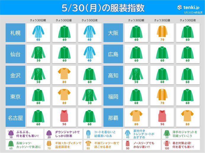 30日の服装指数 朝晩と日中との気温差15 以上の所も 服装で調節を 22年5月30日 エキサイトニュース